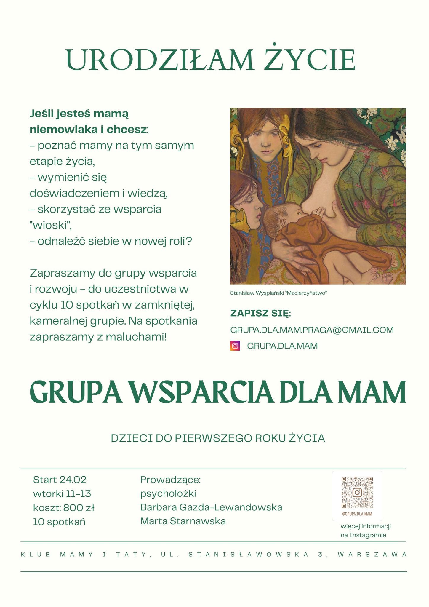 Serdecznie zapraszamy do udziału w grupie wsparcia dla mam niemowlaków – Urodziłam Życie pod patronatem fundacji Sto Pociech. Udział w grupie, to szansa na poznanie innych mam, odnalezienie się w nowej roli i uzyskanie wsparcia kiedy mamy tego najbardziej potrzebują. Spotkania będą się odbywały po sąsiedzku – w Klubie Mamy i Taty. Start grupy planowany jest na wtorek – 24 lutego. Na spotkania zapraszamy z maluchami! Więcej informacji na ulotkach z tyłu kościoła i na plakacie w gablocie. Zachęcamy do wzięcia zaproszenia dla znajomych mam niemowlaków – pomyślcie o swoich koleżankach, siostrach, córkach, a nawet sąsiadkach.